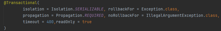 - 위에서와 같은 READ_UNCOMMITED, READ_COMMITED, REPEATEABLE_READ, SERIALIZABLE을 설정 할 수 있다.