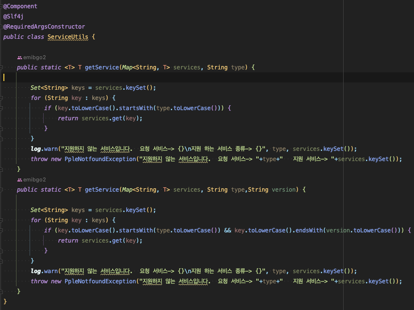 단순히 Map에서 Bean 이름을 기준으로 해당 서비스를 이용할 수 있기 때문입니다.