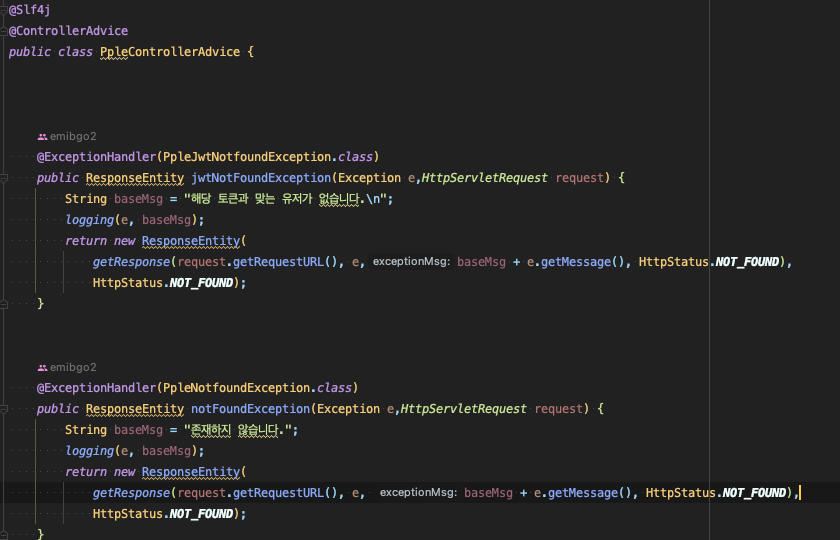 실제 피플 백엔드에서 사용중인 ControllerAdvice의 일부를 발췌하였습니다.